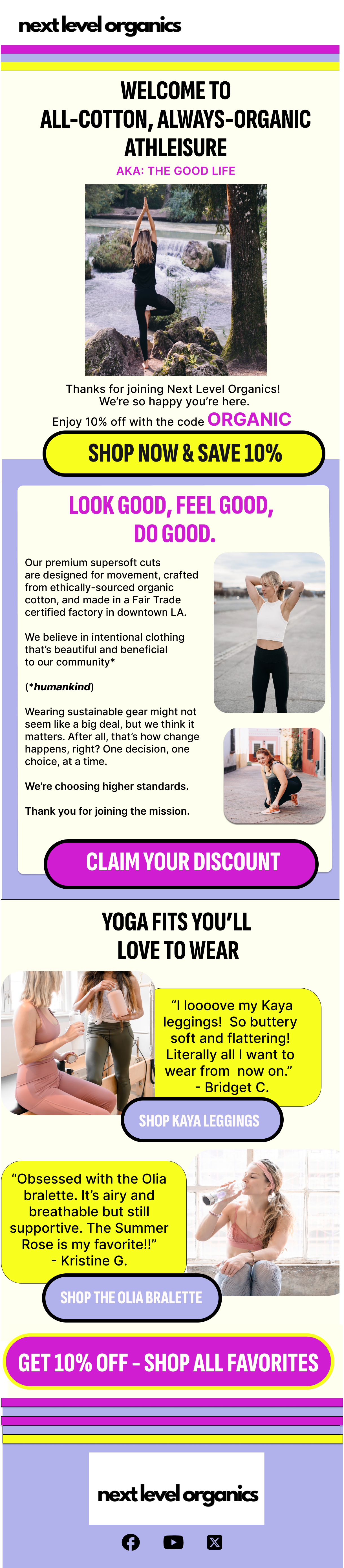 emails and marketing copy for next level organics apparel